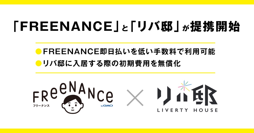 本提携により、GMOクリエイターズネットワークが提供する、⽇本初のフリーランス(※1)に特化した⾦融⽀援サービス「FREENANCE(フリーナンス) byGMO(以下、FREENANCE)」(URL:https://freenance.net/)と、リバ邸の展開するシェアハウス「リバ邸」のユーザーに向けて、以下の支援を行います。